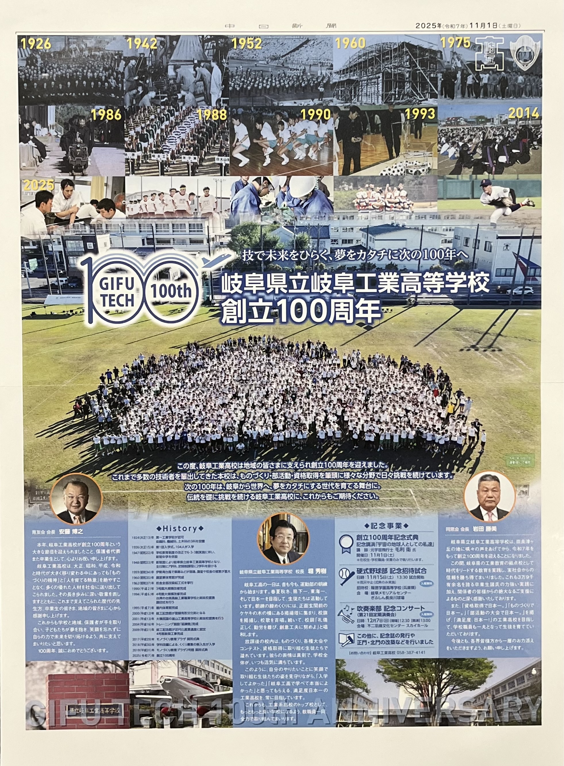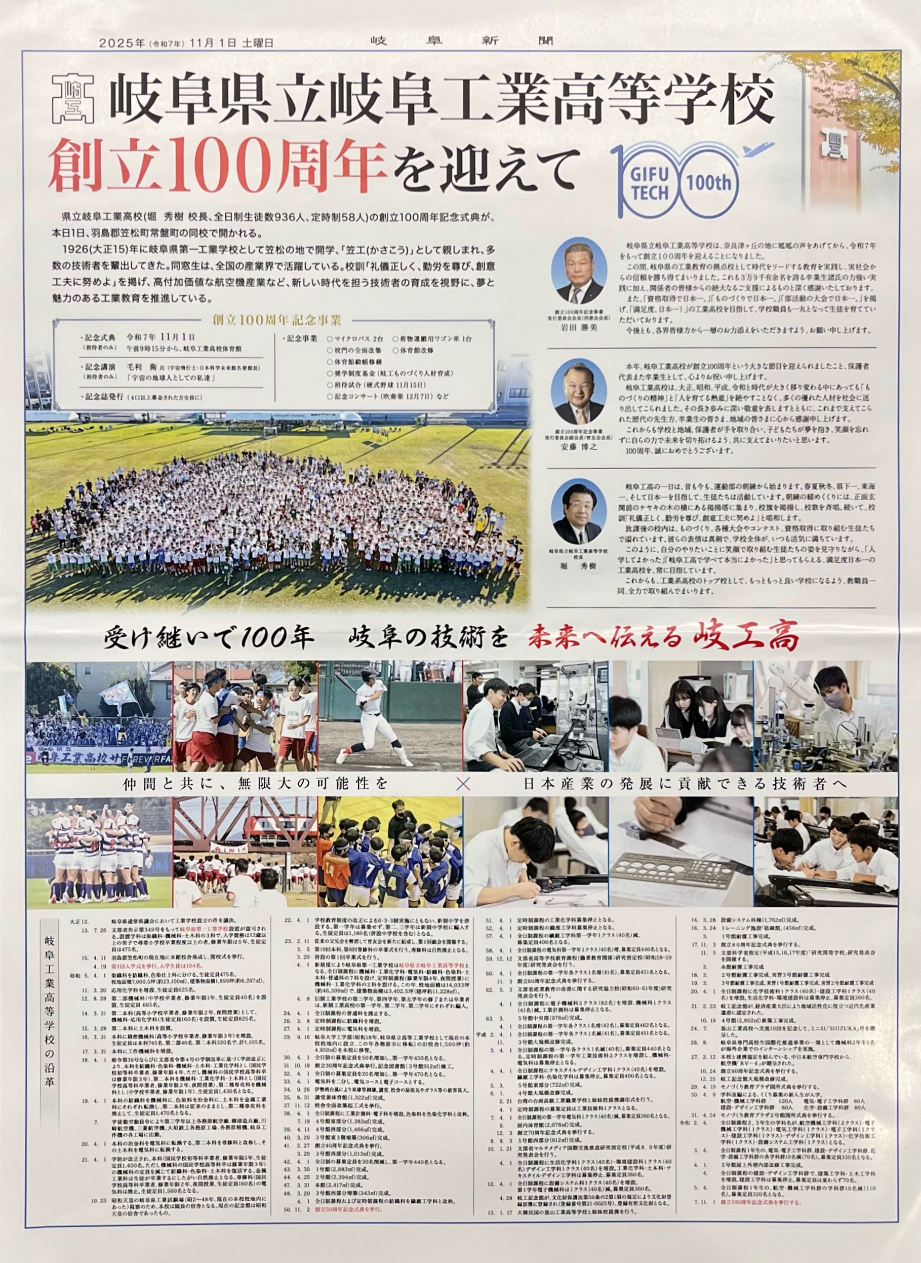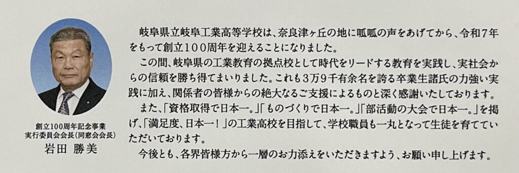岐阜県立岐阜工業高等学校創立100周年記念式典が挙行されました。