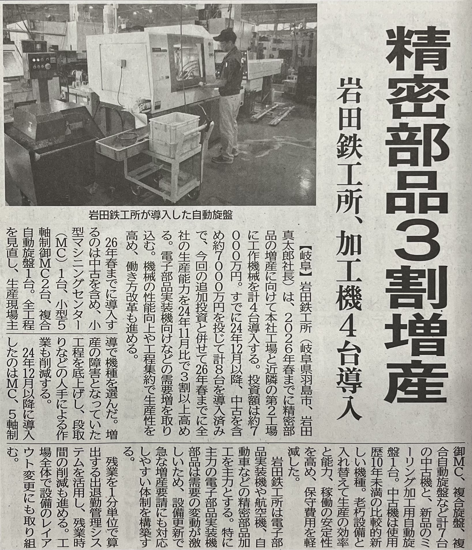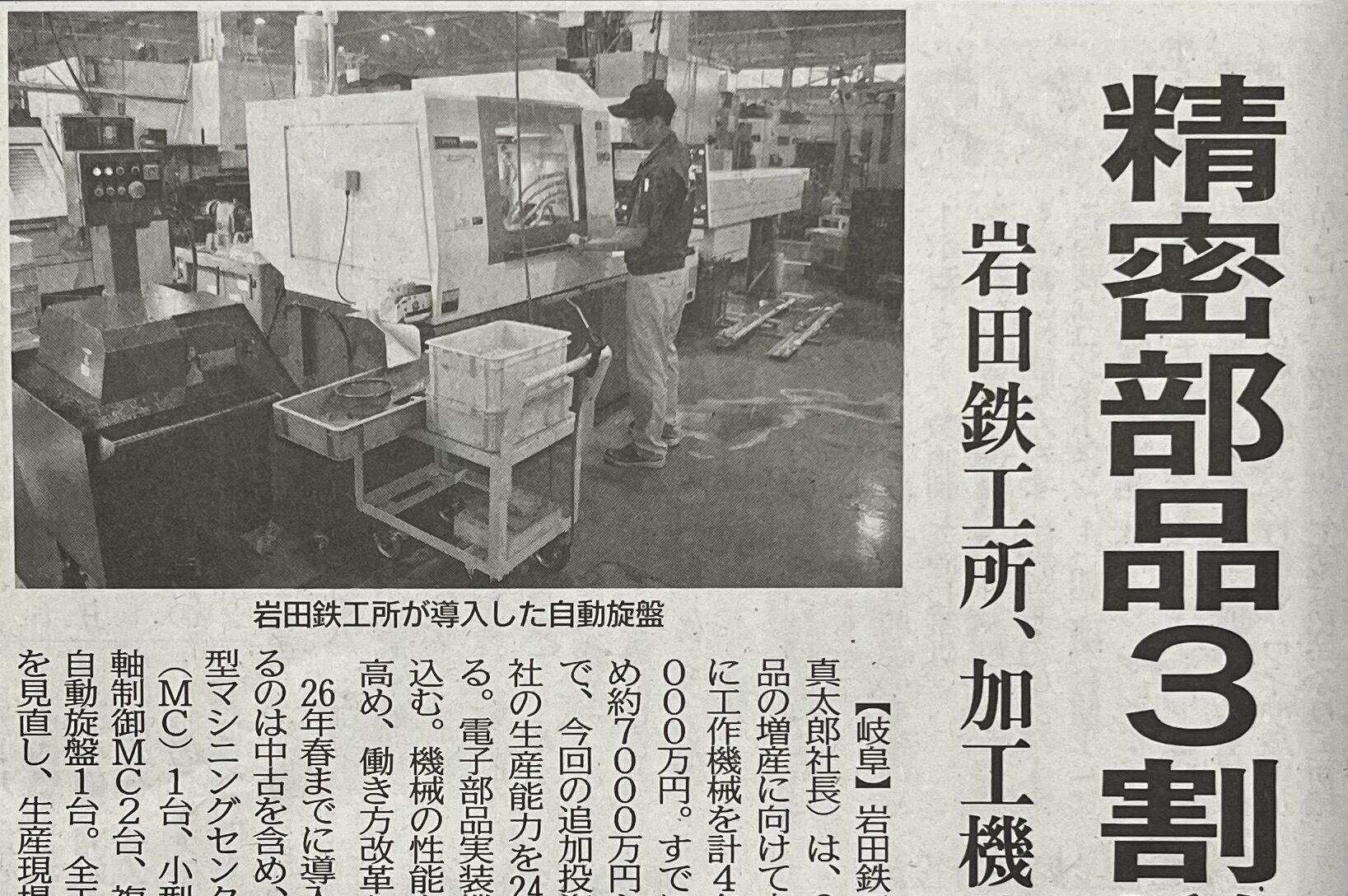 日刊工業新聞に岩田鉄工所の記事が掲載されました。